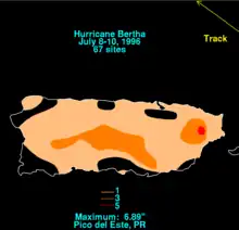 Furacão Bertha na máxima intensidade ao norte de São Domingos em 9 de julho | |