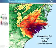 As enchentes de Florence na Carolina do Norte e na Virgínia foram agravadas por enchentes anteriores durante o verão, que deixaram o solo fortemente saturado.[72]