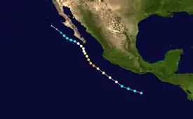 | Áreas afectadas | Sudoeste de México, Ilha Socorro, Península de Baja California, Sul da Califórnia |