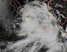 Imagem Gert na intensidade máxima perto do desembarque no norte de México em 20 de setembro | |