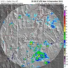 - «Authorities Search for 2 Missing in Southern Utah Floods; 18 Killed». The Weather Channel. Associated Press. 17 de setembro de 2015. Consultado em 17 de setembro de 2015