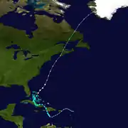 | Áreas afectadas | Pequenas Antilhas, Porto Rico, Jamaica, Haiti, República Dominicana, Cuba, Turks e Caicos, Bahamas, Estados Unidos (sul da Flórida, leste da Carolina do Norte e região da Nova Inglaterra) e Canadá (Nova Escócia, Nova Brunswick, leste de Quebec e Terra Nova e Labrador) |
