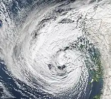 Furacão Ophelia no pico de intensidade ao sul dos Açores, em 14 de outubro | |