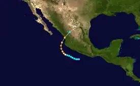 Em 16 de outubro, o Centro Nacional de Furacões (NHC) começou a monitorar o sul da costa sul do México, onde se esperava a formação de uma área de baixa pressão dentro de alguns dias.[2] Previa-se que o desenvolvimento gradual ocorrido fosse propício.[3] Uma área de baixa pressão formou-se, produzindo uma grande área de chuvas e trovoadas.[4] Dados de vento de satélite indicavam que a circulação estava se tornando mais bem definida.[5]