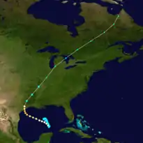 - Atlantic hurricane research division (2009). «Atlantic hurricane database (HURDAT) "best track" (1851–2008)» (em inglês). National Oceanic and Atmospheric Administrations. Consultado em 30 de julho de 2010[b]