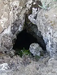 - "A Grota do Risco, neste local, a 15 metros do nível do mar, acha-se a abertura voltada a Norte, a altura da furna atinge 10 metros. Bifurca-se em dois corredores, um para leste, com 21 metros de comprimento e com a largura de 5 metros; o outro na direcção do Sudoeste de 48 metros de comprido e 7 metros na maior largura."[2]