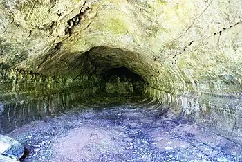Esta cavidade apresenta uma geomorfologia de origem vulcânica em forma de tubo de lava localizado em encosta. Este acidente geológico apresenta um comprimento de 96,3 m[1] por uma largura máxima de 8 m por uma altura também máxima de 6,2 m.[2]