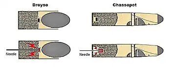 Alguns anos depois no entanto, já a partir de 1870, o sistema de "ignição por agulha" já estava tecnicamente obsoleto.[2] A "ignição por agulha" com cartuchos de papel foi substituída pela ignição por "pino percussor" com cartuchos de metal.[3]
