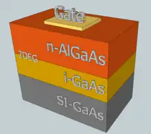Heteroestruturas correspondente ao diagrama de limite de banda de condução de EC e de nível de Fermi EF deterimina a densidade de elétrons no gás de elétrons bidimensional. A forma de níveis quantificados no poço triangular de forma ideal apenas um deles se situa abaixo deEF.