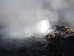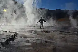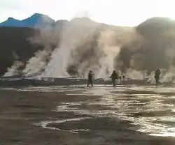 As grandes colunas de vapor saem para a superfície através de fissuras na crosta terrestre, alcançando a temperatura de 85°C e 10 metros de altura.[1]
