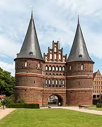 Considera-se que a Igreja de Santa Maria (Marienkirche) de Lübeck, construída com tijolos a partir de 1250, serviu de modelo para as igrejas de tipo basilical da região, isto é, edifícios de três naves (uma nave central mais alta e duas laterais mais baixas) flanqueados por arcobotantes e com transepto pronunciado. Grandes basílicas deste tipo foram também levantadas em Wismar, Stralsund, Riga, Malmö e outros lugares. Nas paróquias das grandes cidade e no interior, também foram comuns as igrejas-salão, em que as naves tem todas a mesma altura, como nas igrejas dedicadas a Santa Maria de Rostock e Gdańsk.