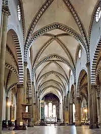 A arquitetura das ordens mendicantes aparece no século XIII, com o surgimento e expansão das ordens dos franciscanos e dominicanos pela Europa.[1] Essa é também a época em que o estilo gótico, surgido no norte da França, expandia-se por todo o continente. Seguindo o ideal de simplicidade e pobreza que os caracterizava, os frades mendicantes construíram igrejas e conventos com uma arquitetura clara e formas básicas, sem os excessos decorativos característicos da arquitetura gótica do norte da Europa.[1]