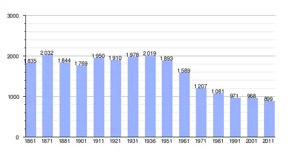 | Variação demográfica do município entre 1861 e 2011[3] |