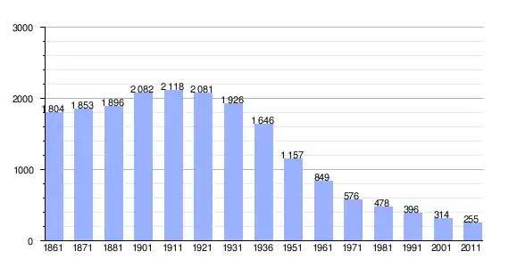 | Variação demográfica do município entre 1861 e 2011[3] |