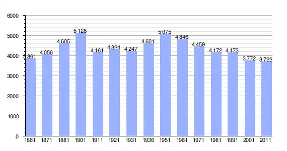 | Variação demográfica do município entre 1861 e 2011[3] |