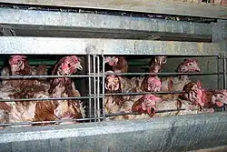 As gaiolas em bateria são a forma predominante de alojamento para a criação de galinhas poedeiras em todo o mundo.[1][2] Elas reduzem a agressão e o canibalismo entre as aves, porém são desoladas, restringem movimentos, previnem muitos comportamentos naturais, e aumentam as taxas de osteoporose.[3] Em 2014, cerca de 95% dos ovos nos EUA foram produzidos nas gaiolas em bateria.[4] No Reino Unido, as estatísticas do Departamento de Ambiente, Alimentação e Assuntos Rurais (Defra) indicam que 50% dos ovos produzidos no Reino, ao longo de 2010, provieram de gaiolas (o resto: 45% de free-range, e 5% a partir de celeiros).[5] No entanto, com a introdução da Diretiva da União Europeia 1999/74/EC,[6] que proibiu gaiolas em bateria convencionais na União Europeia a partir de janeiro de 2012, por razões de bem-estar, o número de ovos de gaiolas em bateria nos membros da União tem decrescido rapidamente.[7][8]