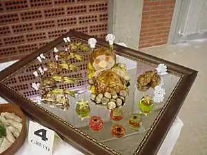 - Galantine de marcassin: carne de javali, trufas, presunto, toucinho, língua, ovos e pistácios.