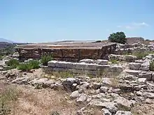 - [a] ^ Os "Salões Minoicos" eram áreas frequentemente encontradas em palácios ou grandes edifícios minoicos compostos por uma sala grande e uma sala mais pequena, ambas ligadas por um polythyron (conjunto de porta e pilar). Por sua vez, a sala mais pequena era dividida por um poço de iluminação e por um pórtico.