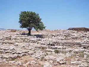 Apesar do palácio datar do período neopalaciano, no local já existia uma cidade próspera no período protopalaciano (1 900–1 700 a.C.). Um edifício na ala ocidental do palácio mostra evidências de atividade controlada centralmente num cenário não palaciano. Num edifício com não mais do que 40 m² há evidências de que a moagem de cereais era organizada numa escala muito maior do que seria necessária para as sustentar as pessoas que ali viviam. Foram ali descobertas 70 mós e centenas de vaso para beber, o que sugere que banquetes cerimoniais podem ter tido lugar nas salas do andar de cima do edifício. Uma parte da cerâmica era originária de Cnossos e Festo e um pedaço de uma pega de marfim de uma espada sugere que um indivíduo de estatuto elevado viveu no edifício ou supervisionou o trabalho e/ou os banquetes cerimoniais.[2]