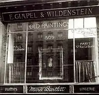 A Galeria Wildenstein foi fundada em Paris durante a década de 1870 pelo empresário judeu alsaciano Nathan Wildenstein, reunindo pinturas, esculturas e desenhos franceses dos séculos XVIII e XIX, e obras mais antigas de mestres italianos, holandeses, flamengos e espanhóis. Na virada do século, a galeria já era uma das mais proeminentes da capital francesa. Apesar disso, Wildenstein considerava que o emergente mercado norte-americano era mais promissor. Associou-se aos marchands Ernest e René Gimpel, com os quais abriu a Gimpel & Wildenstein em Nova Iorque, em 1903. Trinta anos depois, a galeria mudou-se da Quinta Avenida para um edifício encomendado ao arquiteto Horace Trumbauer, que lhe serve de sede até hoje.[1] Em 1925, a galeria abriu uma filial em Londres e, em 1929, outra em Buenos Aires.[3]
