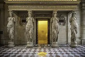 O elaborado salão dos menestréis no Salle des Caryatides, Palácio do Louvre, Paris
