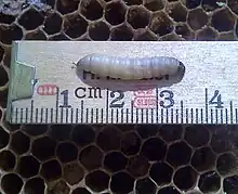 As fêmeas depositam os ovos nos favos das colmeias[5] ao passo que as larvas costumam eclodir entre três e cinco dias mais tarde[4].