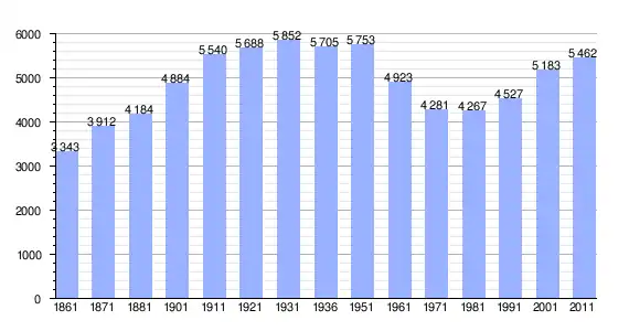| Variação demográfica do município entre 1861 e 2011[3] |