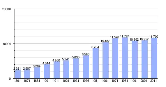| Variação demográfica do município entre 1861 e 2011[3] |