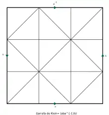 Uma possível triangulação da garrafa de Klein é dada pela figura abaixo, na qual temos uma triangulação da representação poligonal desta figura topológica.