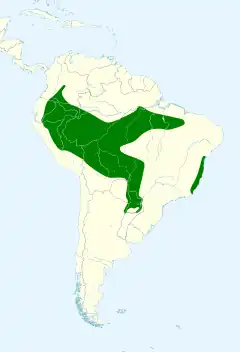 Pode ser encontrada nos seguintes países: Argentina, Bolívia, Brasil, Colômbia, Equador, Paraguai e Peru.[1]