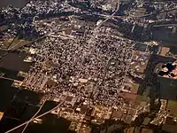 O diagrama seguinte representa as localidades num raio de 12 km ao redor de Gas City.