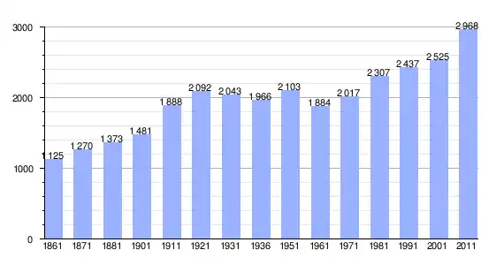 | Variação demográfica do município entre 1861 e 2011[3] |