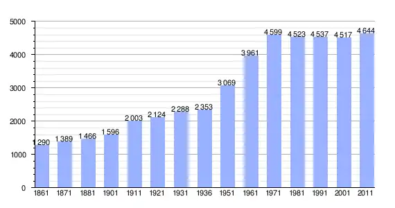 | Variação demográfica do município entre 1861 e 2011[3] |