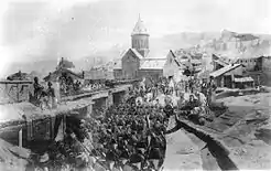 Ao mesmo tempo, a tensão étnica estava crescendo entre georgianos e armênios. Desde a emancipação dos servos, grande parte da nobreza da Geórgia entrou em declínio. Incapazes de competir nas novas circunstâncias econômicas, muitos tinham abandonado suas propriedades para se juntar ao serviço de Estado russo ou tentar construir fábricas nas cidades. Os principais beneficiários tinham sido os armênios, que tinham comprado suas terras. Nas cidades, especialmente Tbilissi, embora eles já não constituíssem a maioria da população como na virada do século XIX, armênios realizavam possuíam a maior parte dos negócios comerciais.[32]