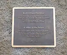 No final está a leitura do dióxido de carbono atmosférico global para aquele mês: 415 ppm. A cerimônia contou com a presença de Katrín Jakobsdóttir, a primeira-ministra da Islândia; Guðmundur Ingi Guðbrandsson, Ministro do Meio Ambiente; e Mary Robinson, ex-presidente da Irlanda.[2] A colocação da placa visa aumentar a conscientização sobre o declínio das geleiras da Islândia devido ao aquecimento global.[2][6] Antes da cerimônia, o NASA Earth Observatory twittou imagens de Okjökull em 1986 e 2019.[3]