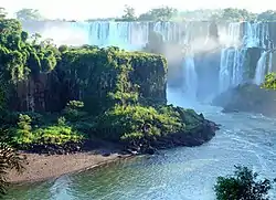Na América do Sul, reaparece as vertentes do Pacífico mesmo que os rios que desaguam no Atlântico serem maiores e mais importantes. Destacam os rios Orinoco, o sistema Paraná-Plata e o rio Amazonas. O rio Amazonas é o maior rio da Terra, tanto em volume de água quanto em comprimento (6937,08 km de extensão), nas cheias a distância de uma margem a outra pode chegar a 50 km.[4] A América do sul não apresenta, ao contrário da América do Norte, grandes extensões lacustres, mas ainda assim possui inúmeras lagoas costeiras, sobretudo na vertente atlântica, como a lagoa dos Patos, no Brasil; lagoas de inundação nas planícies Amazônica e do Orinoco; e lagos de altitude, como o Titicaca, entre o Peru e a Bolívia.[2]