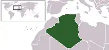 A Argélia faz fronteira com Marrocos (1 559 km), Mali (1 376 km), Líbia (982 km), Tunísia (965 km), Níger (956 km), Mauritânia (463 km) e Saara Ocidental (42 km). Na área costeira faz fronteira com o mar Mediterrâneo.
