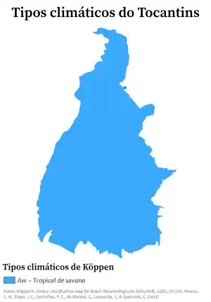 - Roldão, Aline de Freitas; Ferreira, Vanderlei de Oliveira (5 de novembro de 2019). «Climatologia do Estado do Tocantins - Brasil». Caderno de Geografia (59): 1161–1181. ISSN 2318-2962. doi:10.5752/p.2318-2962.2019v29n59p1161. Consultado em 5 de março de 2024