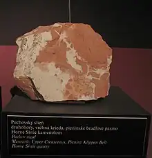 Turfa, areias eólicas sopradas pelo vento, areia fluvial e cascalho e loess são todos sedimentos quaternários típicos, formados nos últimos 2,5 milhões de anos e dominando a superfície das planícies eslovacas. [3] As folhas de loess da Eslováquia são nomeadas, do menor para o maior W 1, W 2 e W 3 . Entre W 1 e W 2 encontra-se uma camada de solo de terra preta e entre W 2 e W 3 encontra-se um solo incipiente que em partes é gleyado ou crioturbado .[2]