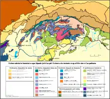 - Rudabanyaicum : Pequenas unidades nappe triássicas levemente metamorfoseadas que se estendem da Hungria para a Eslováquia.
