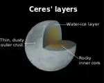 O achatamento de Ceres é consistente com um corpo diferenciado, um núcleo rochoso recoberto por um manto gelado.[4]