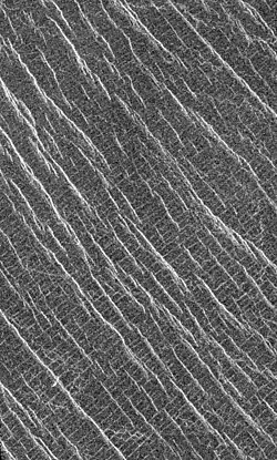 A rugosidade do terreno é representada no brilho das imagens de radar (as superfícies mais suaves são mais escuras) e servem para determinar as diferenças das lavas aa e das cordadas. Estas variações também podem refletir as diferenças de idade e o estado de preservação. Os canais e os tubos de lava (canais que se esfriaram e que haviam criado uma parede em cima) são muito comuns em Vênus.