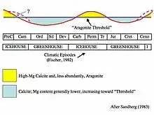 - Sandberg, P.A. (1983). «An oscillating trend in Phanerozoic non-skeletal carbonate mineralogy». Nature. 305: 19–22. doi:10.1038/305019a0