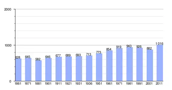 | Variação demográfica do município entre 1861 e 2011[3] |