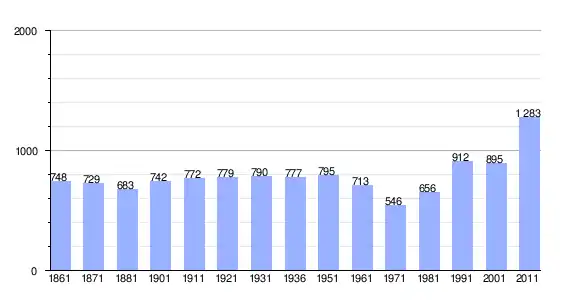 | Variação demográfica do município entre 1861 e 2011[3] |