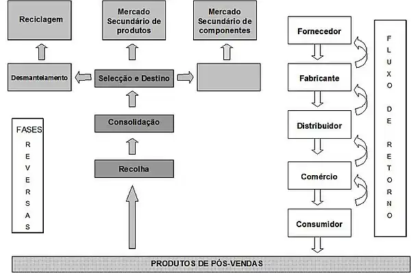 Os fluxos reversos de pós-venda permitem que os bens sejam reaproveitados e reintegrados nos vários destinos, respectivos mercados primários e secundários, com pouca ou nenhuma alteração da sua natureza. Na impossibilidade de qualquer reaproveitamento integral dos bens, estes são encaminhados para reciclagem. A distribuição directa, por sua vez, envolve diversas etapas através das quais os bens produzidos são comercializados até ao consumidor final.