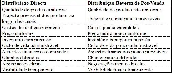 Na Figura 3 são evidenciadas as principais diferenças entre as distribuições reversa de pós-venda e directa.