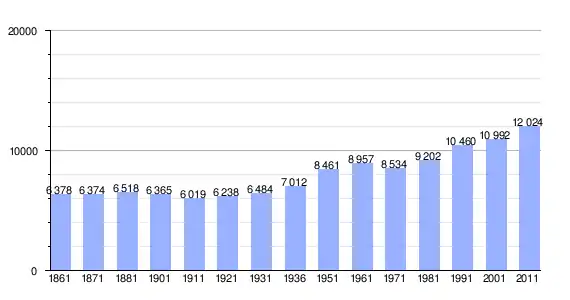| Variação demográfica do município entre 1861 e 2011[3] |