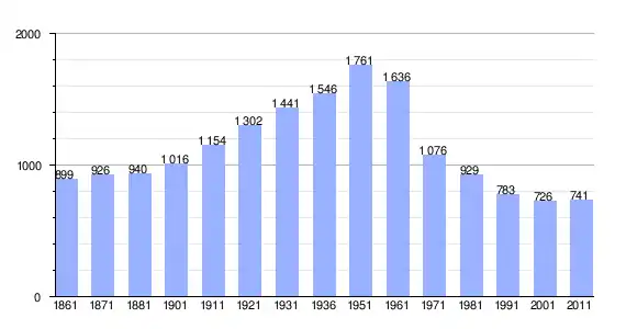 | Variação demográfica do município entre 1861 e 2011[3] |