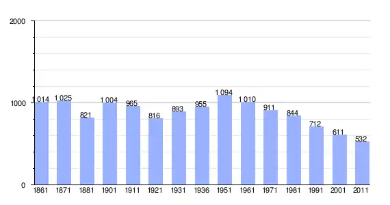 | Variação demográfica do município entre 1861 e 2011[3] |